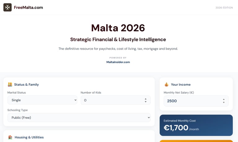 The cost of living is shifting. Don't let 2026 catch you off guard. FreeMalta.com to bring you the island's most advanced simulation of the 2026 Maltese economy. Get the facts before you make your move.
