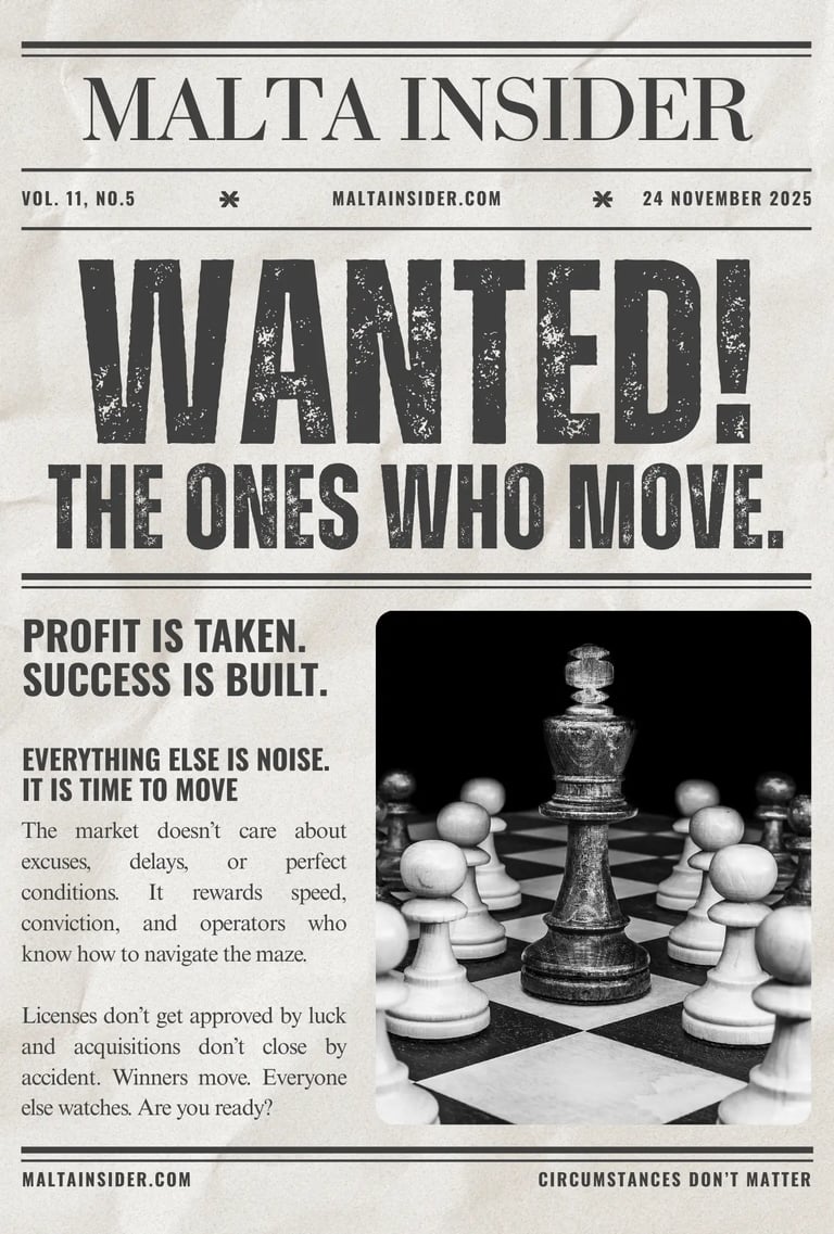 Add to that my years inside iGaming and Forex operations; sectors where regulation, pressure, and timelines don’t forgive mistakes and the network I’ve built in Malta over more than a decade…and you get someone who can shortcut the path that most people get trapped in.
