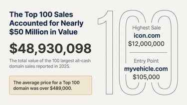 While .AI has emerged as a powerhouse in 2025, capturing $5.1 million of the Top 100 sales , it remains a vertical-specific asset class. For the gaming industry, where consumer psychology and "legacy trust" are paramount, .COM remains the strategic default.