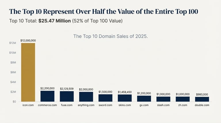 In the 2025 landscape, .COM remains the undisputed gold standard, accounting for 59% of the top sales. But even within .COM, there is a hierarchy. Most operators build on "rented ground" fragmented brand names that require millions in SEO and PPC to maintain visibility.