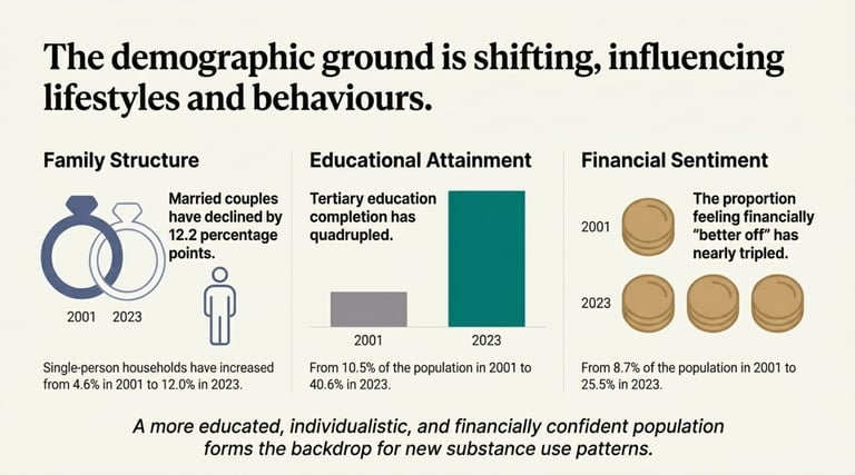 For leaders and investors, these trends are not just statistics; they are market intelligence. They reveal a population that is wealthier, more independent, and increasingly focused on "modern" vices that fit into a fast-paced, digital lifestyle.